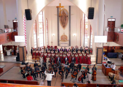 The Choir has enjoyed steady growth in its membership, which for quite some time now has grown to about 60 active members. The membership is diverse with men and women from different walks of life who have offered their service and voices to God and the Church on purely voluntary basis. It is gratifying to note that since its inception, the choir has been in attendance during the 10 O’clock Mass at Christ the King Church, every Sunday up to the present day.